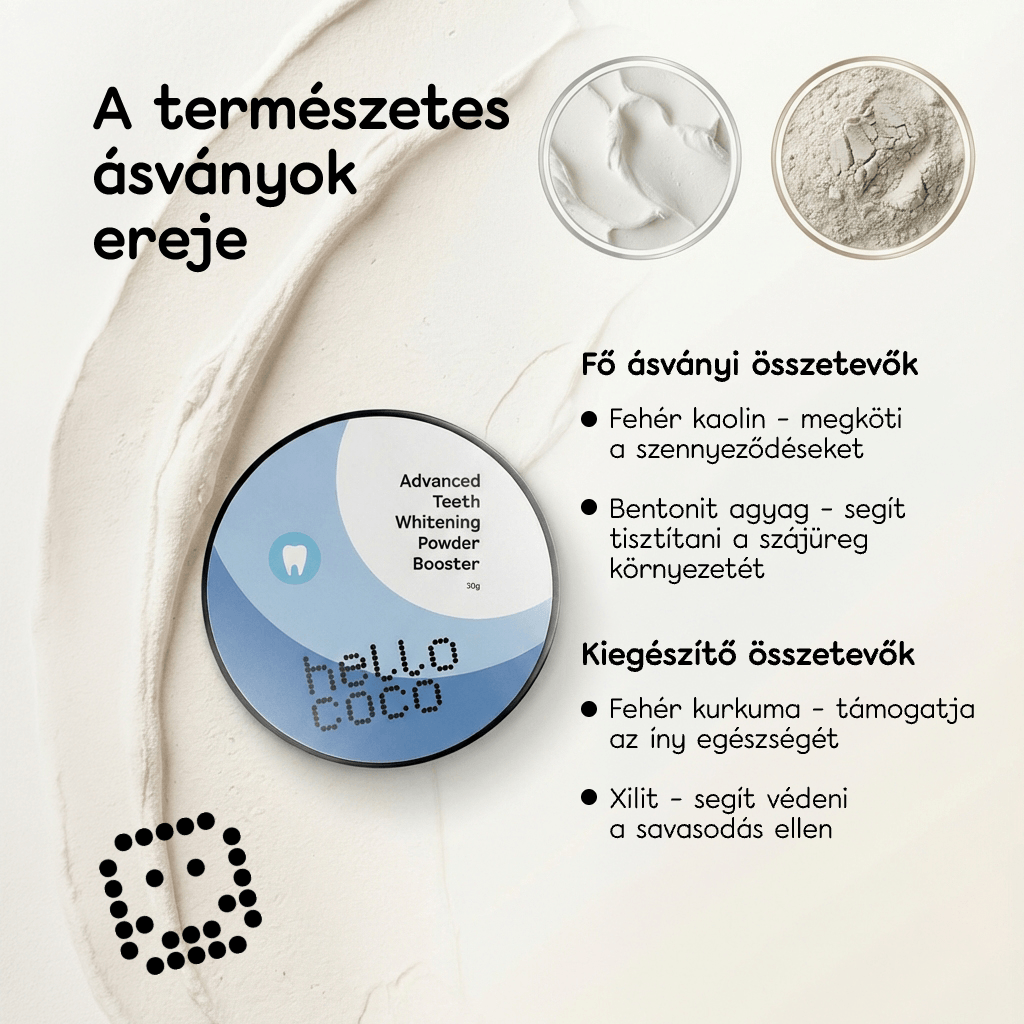 Ez a por hatékonyan fehéríti a fogakat kaolinnal és bentonit agyaggal