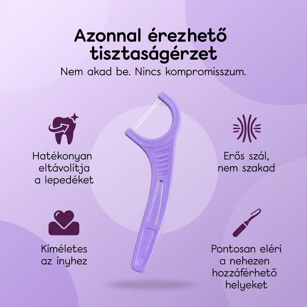 Ott, ahová a fogkefe nem jut el, a rendszeres ápolás számít igazán. A fogselyemmel ellátott fogköztisztító pálcikák segítenek eltávolítani a lepedéket és az ételmaradékokat, támogatják az egészséges ínyt és hozzájárulnak a friss lehelethez nap mint nap.
