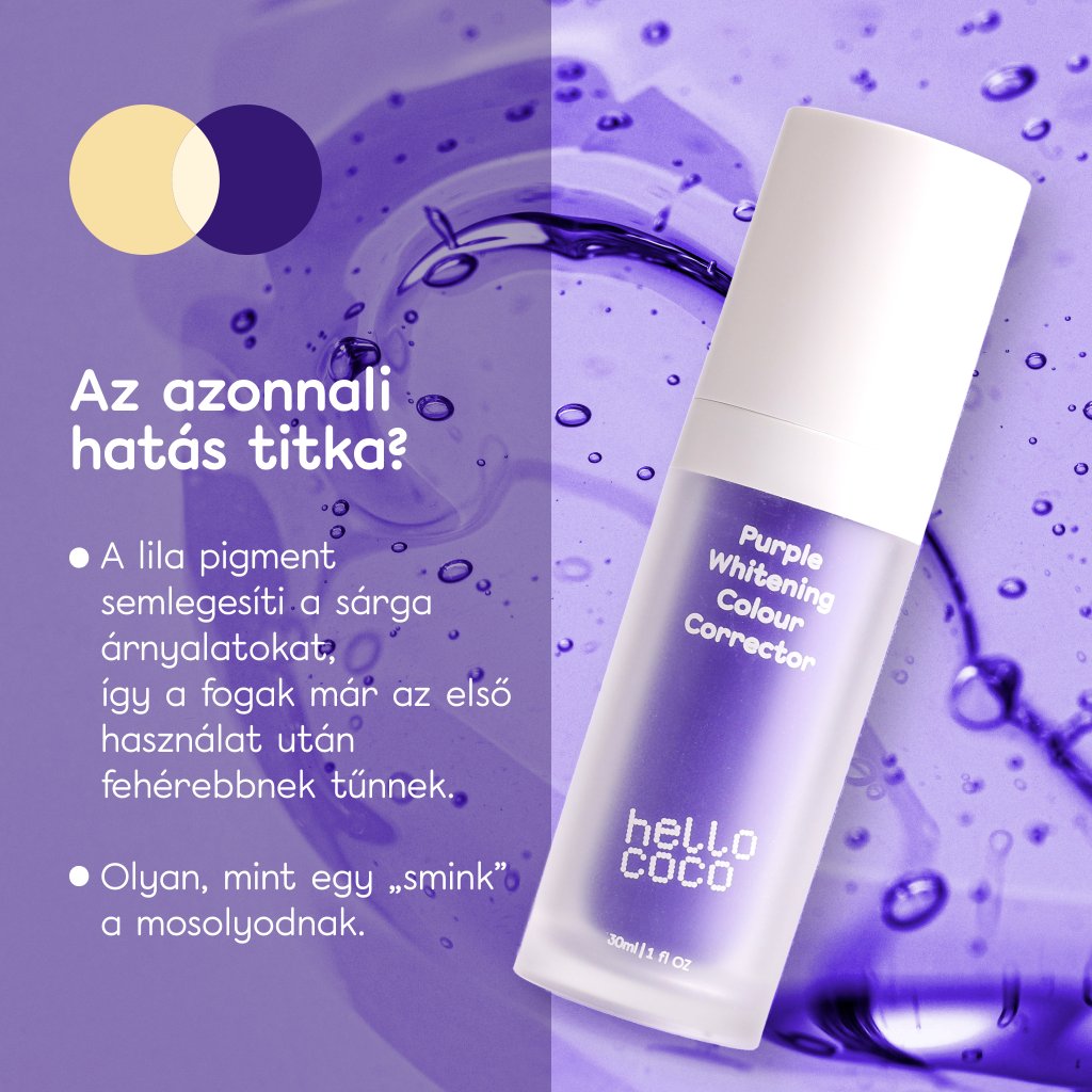 A színkorrekció alapja a színkör, ahol a lila és a sárga egymással szemben álló, egymást kiegészítő színek. A lila fogkrém felvitele a fogakra eltávolítja a sárga árnyalatokat, így a fogak fehérsége jelentősen javul.