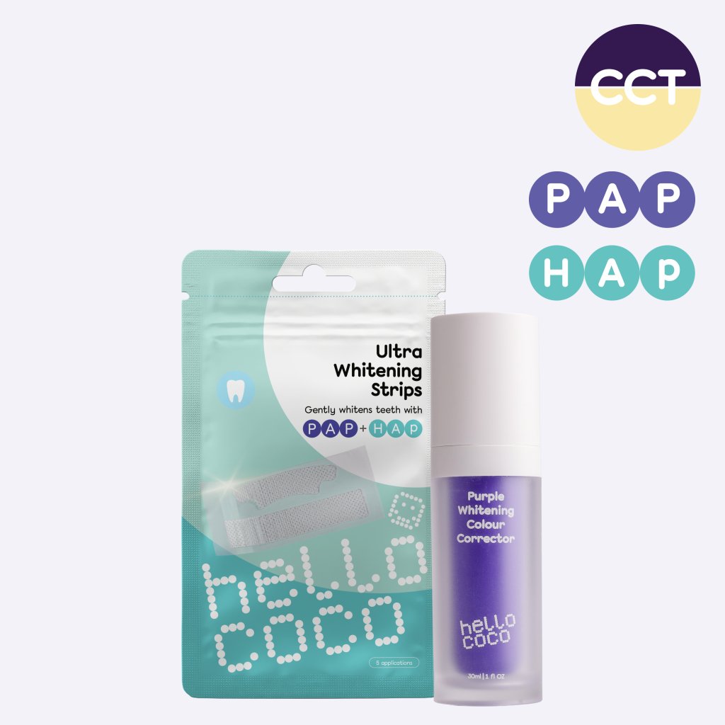 A színkorrekciós fogkrém azonnal világosítja a fogakat, míg a PAP fehérítő csíkok a lehető legkényelmesebb módon biztosítanak hatékony fehérítést.